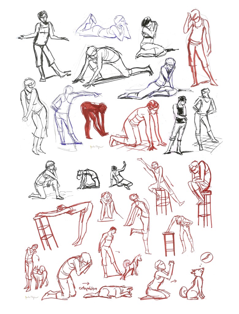 Gesture Drawing. Poses for 30 seconds to 1 minute, directly drawn with different pens – the goal is to keep it loose!