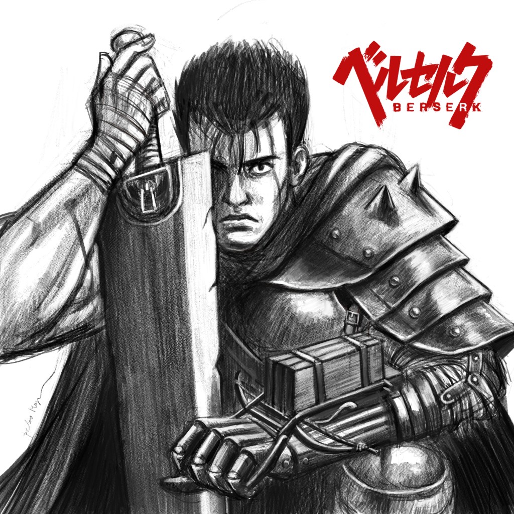 This fan art is a tribute to Kentaro Miura. It´s based on one of my favorite covers from his series Berserk. Rest In Peace Master.